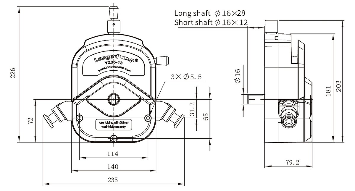 Der YZ35‑13 Peristaltik‑Pumpenkopf wurde speziell für industrielle Anwendungen mit sehr hohen Durchflussraten entwickelt. Dank seiner robusten Bauweise und leistungsstarken Konstruktion eignet er sich ideal für Prozesse, bei denen große Volumenströme, Dauerbetrieb und hohe Prozesssicherheit erforderlich sind. Der Pumpenkopf unterstützt zwei Schlauchfixier‑ und Führungsarten: kontinuierliche Schlauchführung sowie den Einsatz von Schlauchanschlüssen mit Fittings. Die verwendeten Schläuche mit einer Wandstärke von 3,3 mm sorgen für eine hohe mechanische Stabilität, verbesserte Druckbeständigkeit und eine lange Standzeit – auch bei anspruchsvollen Medien und dauerhaftem Betrieb.